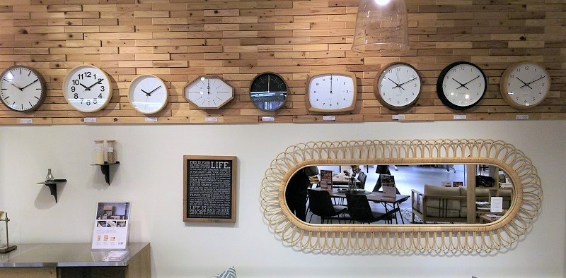 室内を飾ってくれたり、機能性を発揮したり、時には両方持ち合わせたり。 インテリア空間をつくりあげるのに大きな力をもった掛け時計や鏡などのインテリア雑貨。ア.デペシュの品ぞろえは素材感を引き出す造形や加工感や遊び心があります。一日何度も目にするものだから、機能だけでなく空間に合ったデザインの品をこだわって選びたいですね。