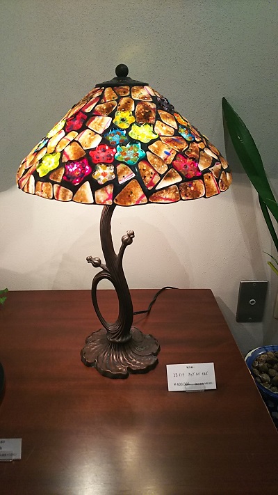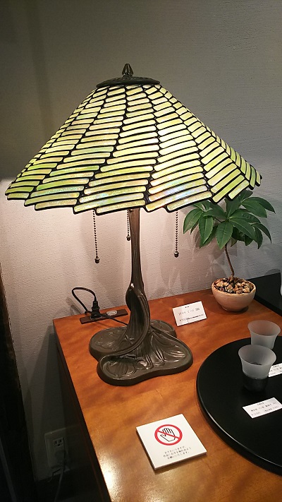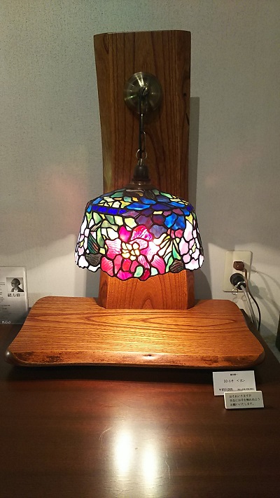 緒方氏の作品にはティファニーランプのように色鮮やかなガラスをつなぎ合わせて作られたステンドグラスランプだけでなく、日本の家屋にもマッチする落ち着いた色彩の作品も数多くあります。