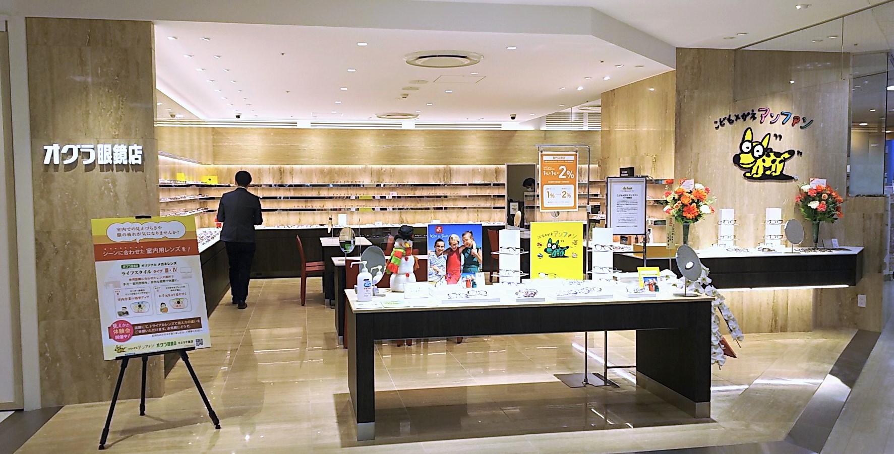 こどもメガネ アンファンそごう千葉店では、お子さまだけでなく、お父さまお母さまもご一緒にメガネを楽しんでいただけるように大人向けメガネを扱う「オグラ眼鏡店」も併設しています。