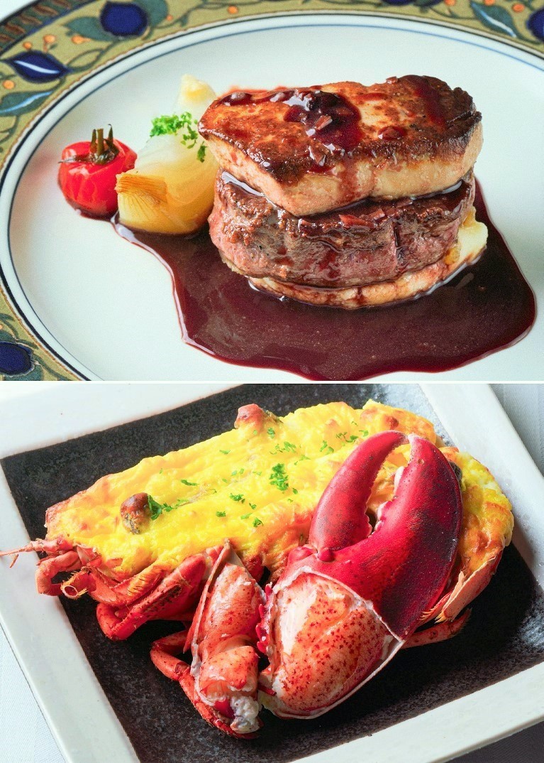 国産牛フィレ肉とハンガリー産フォアグラとトリュフソースの贅沢な一皿です。