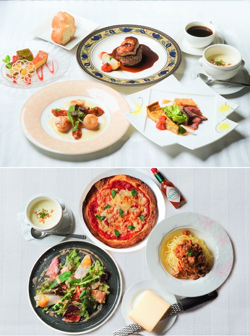 写真下)ランチタイム(午前11時~午後4時)のパスタ/ピザセット 2,178円(平日限定)