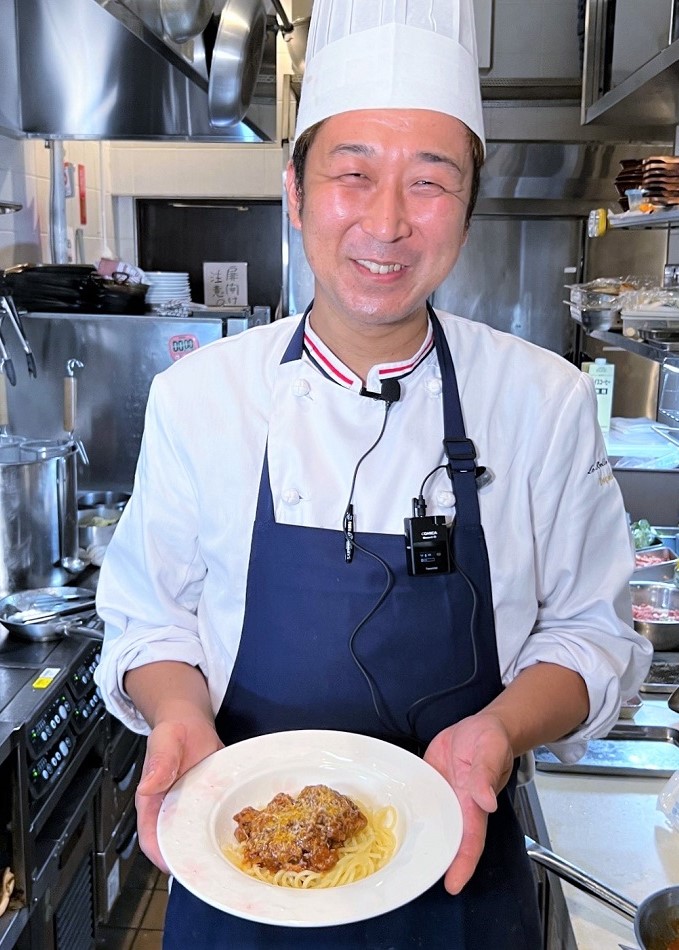 VOYAGEでランチセットの一番人気「VOYAGE名物子羊のミートソース」の作り方をシェフの宮澤義弘さんが動画で丁寧に教えてくれました。希少なこだわりの生パスタを食感にこだわって茹であげ、ソースが掛からない部分のパスタだけ食べても美味しくなるよう、バターと茹で汁で仕上げるという繊細な作り方です。それに絶品のゴロゴロした子羊肉の入ったトマトソースをかけ、最後にコクのあるペコリーノロマーノチーズを削ってたっぷり振りかけた仕上がりは「名物」と称されるだけのことがあります。パスタで既にここまでのこだわりですから、ほかは推して知るべしでしょう。
