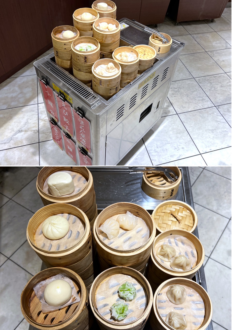 香港蒸籠自慢のワゴンサービスの点心類は10種類。ホール内を随時巡回してくれていますから、蒸籠で常時蒸かし立てのアツアツが味わえます。