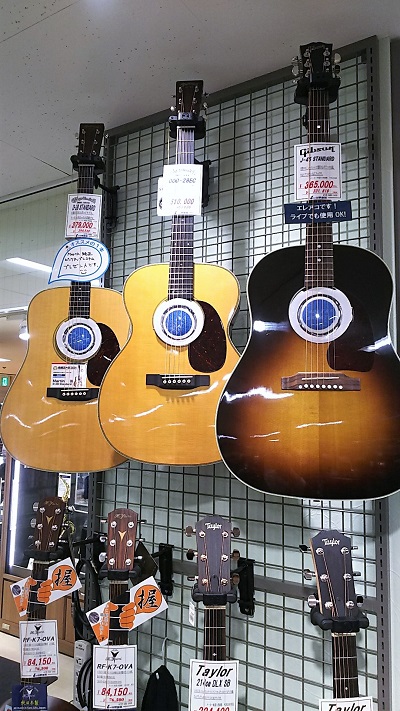 ギターマニアが狂喜しそうなギタールーム。アコースティックやエレクトリックギターの名品がずらりと揃っています。多くのギターの名品を輸入してきた創業130周年を迎える山野楽器の面目躍如ですね。
