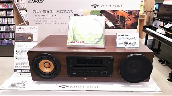 山野楽器大宮店では音楽ファンに喜ばれるオーディオセットもご紹介しています。これは最新の小型スピーカーとCDプレーヤーなど多くのデバイスに対応する超コンパクトなオーディオセット。スピーカー一体型で設置しやすく、しかも小型なので寝室などにも最適です。