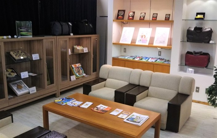 ゆったりとした応接スペースでは、熱心なゴルフファンのための親身なコンサルティングが行われています。もちろんゴルフコンペ関係のギフトアイテムもご用意しています。