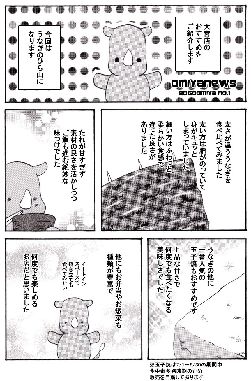 そごう大宮店の開店から変わらず、地域の名店として地元のお客さまのご愛顧をいただいてきた「ひら山」。このお店のご主人は銀座のうなぎで有名な老舗料亭出身で、うなぎだけでなく、う巻、玉子焼、筑前煮など日本料理も得意です。江戸時代から続く関東グルメの代表でもあるうなぎの蒲焼は「串打ち三年焼き一生」と言われるくらい焼き加減が難しい料理ですが、ご主人は開店以来今も変わらず朝7時ごろからその日のうなぎを焼き始めます。ここの店内には小さなイートインスペースもあり、手軽な贅沢として焼きたてのうなぎを味わうこともできます。【2021.4月記】