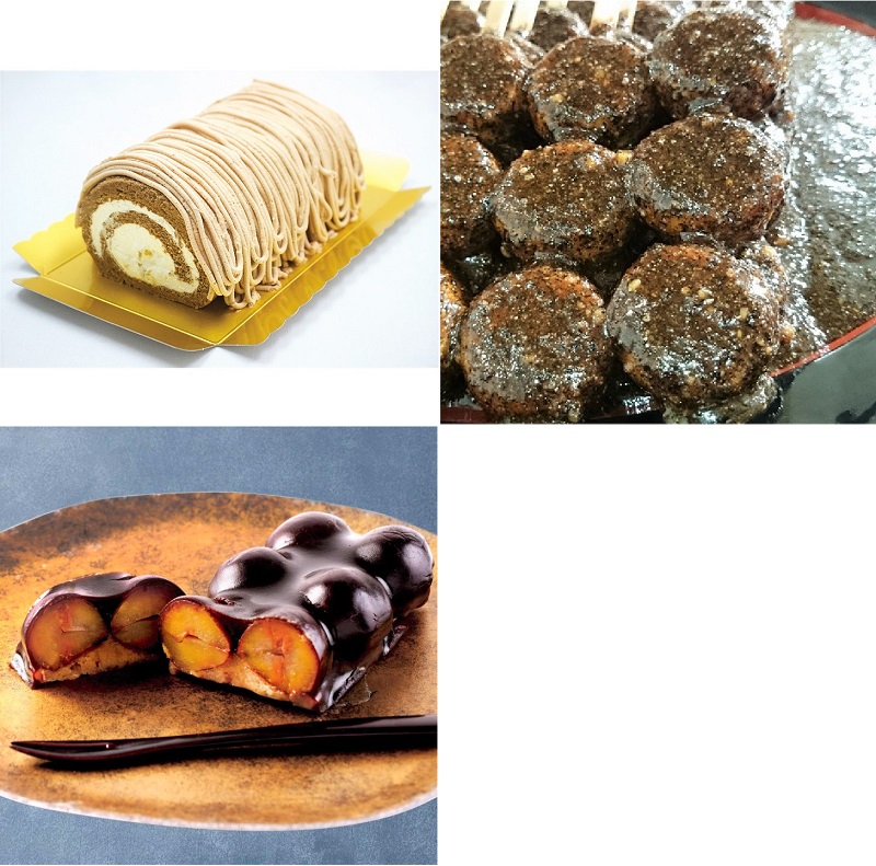 ●焼きモンブラン(3個入、1箱) 1,782円 大粒の栗が丸ごと入っています。アーモンドとバターが利いたパリパリ・サクサクのスイーツ。