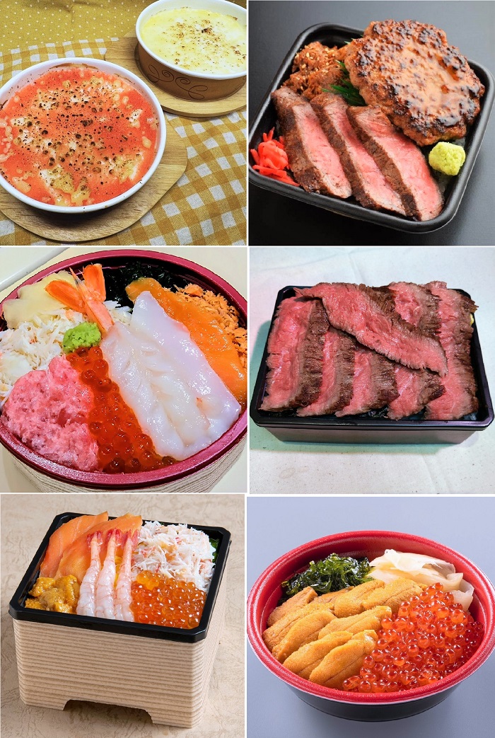 下左)◇【函館】椀屋/紅白ほたて・うに マシマシ弁当 価格:3,996円(うに:チリ産、ほたて:北海道産、1折)
