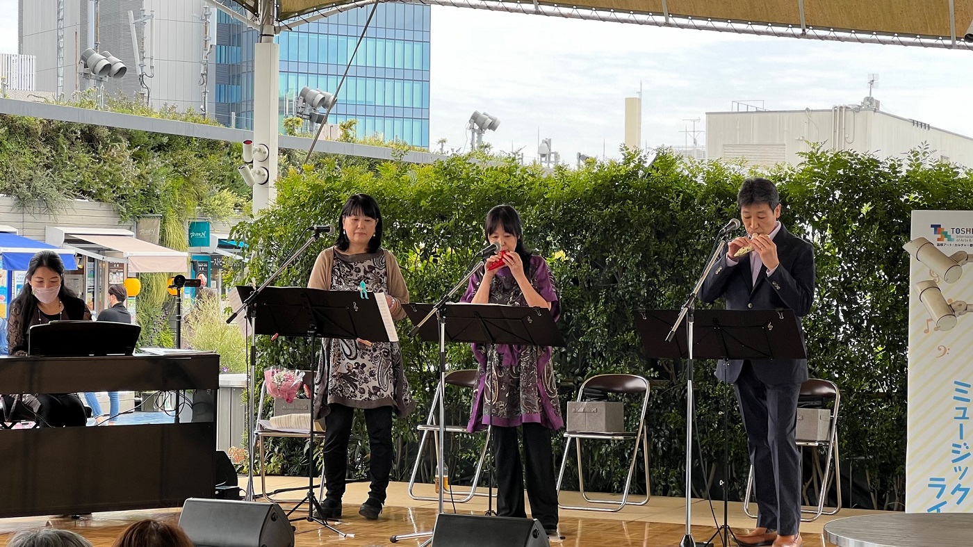 西武池袋本店では、毎年春と秋の週末の土・日・祝日の午後、屋上ステージでミニコンサートを開催し、クラシックからポピュラーミュージックまで、来場されるお客さまが質の高い生演奏に触れる機会をご用意しています。このコンサートは東京音楽大学、東京芸術劇場、豊島区、ヤマハミュージックジャパンなど皆さま方のご協力により、音楽愛好家、音楽教育関係者、音楽を学ぶ学生、プロの演奏家の方々の力に支えられ、お客さまに生の音楽をご提供しています。厳しい感染対策が求められ、少ない席数ながら本物の生演奏の魅力を通じ、池袋から音楽のある暮らしの喜びが広がっています。’22年春、4月17日(日)はヤマハミュージックジャパン協力のコンサートを開催。ベビーカー連れのお客さまからシニアのお客さままでが迫力ある生演奏の音に直接触れ、大きな感動に包まれました。この日は池袋コミュニティ・カレッジ講師でもある山本千恵子さんとオカリナ・アンサンブル”ARPEGE”の演奏。次の動画は当日の演奏です。
