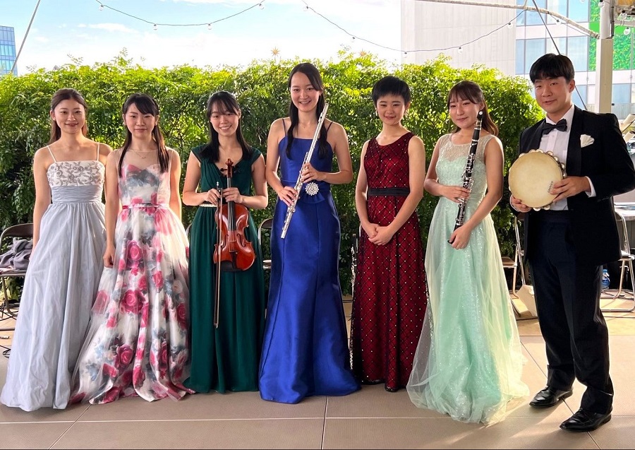 西武池袋本店では、毎年春と秋の週末、土・日の午後、屋上ステージでミニコンサートを開催し、クラシックからポピュラーミュージックに至るまで、来場されるお客さまが質の高い生演奏に触れる機会をご用意しています。このコンサートは東京音楽大学、東京芸術劇場、豊島区、ヤマハミュージックジャパンなどの皆さま方のご協力により、音楽愛好家、音楽教育関係者、音楽を学ぶ学生、プロの演奏家の方々の力に支えられて実現したものです。厳しい感染対策が求められているため席数は少ないですが、本物の演奏に触れることにより、音楽のある暮らしの喜びを池袋から発信することを目指しています。’22年秋【11月5日(土)】は東京音楽大学「ACTプロジェクト」―学生によるコンサート運営プログラム―による 『COUNTRY DANCE & MUSIC』 を開催。ベビーカー連れのお客さまからシニアのお客さままでが迫力ある生演奏の音に触れ、心に残る体験となりました。次の動画は【11月5日(土)】当日の演奏の一部です。