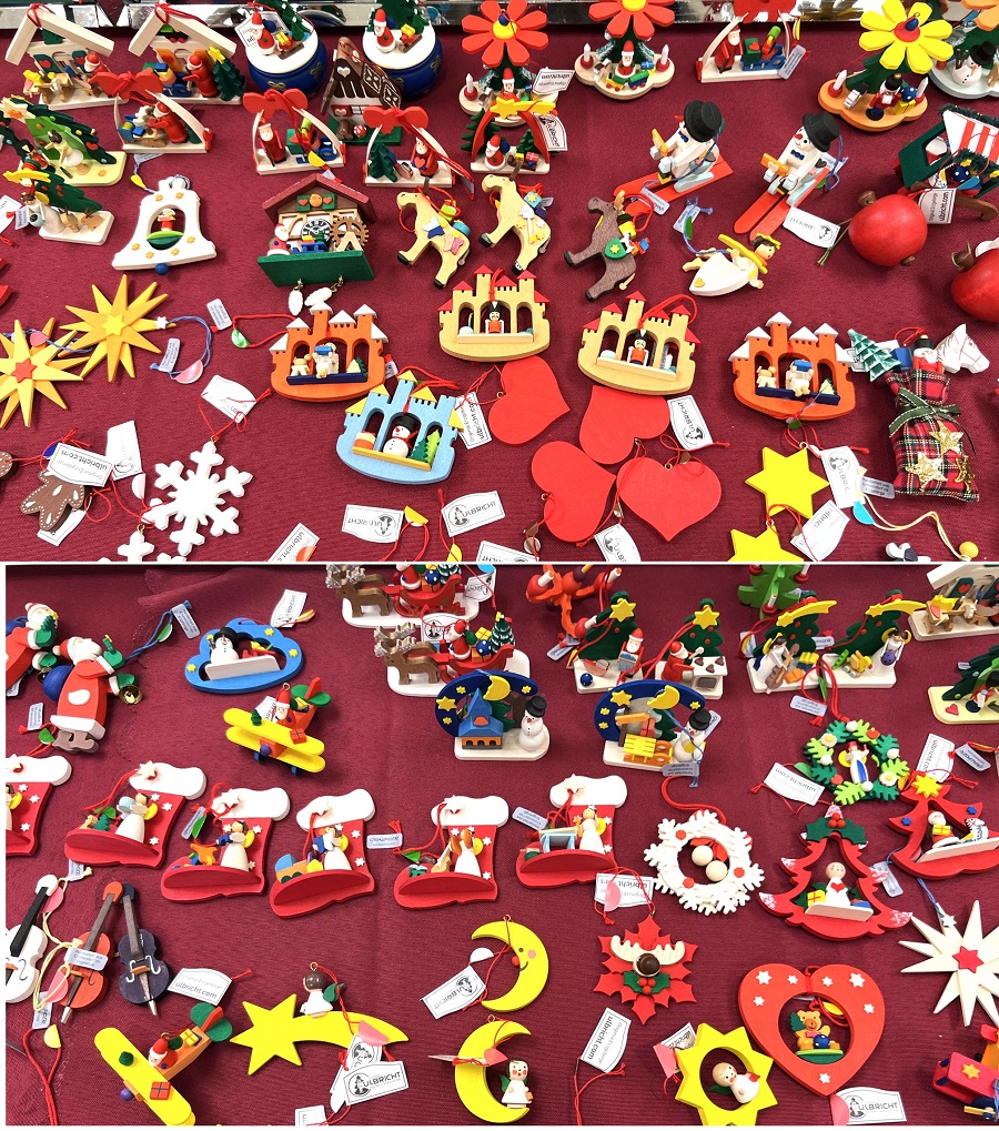 ドイツのクリスマスツリーオーナメントです。ドイツのオーナメントは安価な使い捨てではなく、一つ一つ職人が丹精込めて作った木製のものが多く、決して安価ではないため、少しずつ毎年買い足していくものだそうです。独特な温かみがあります。