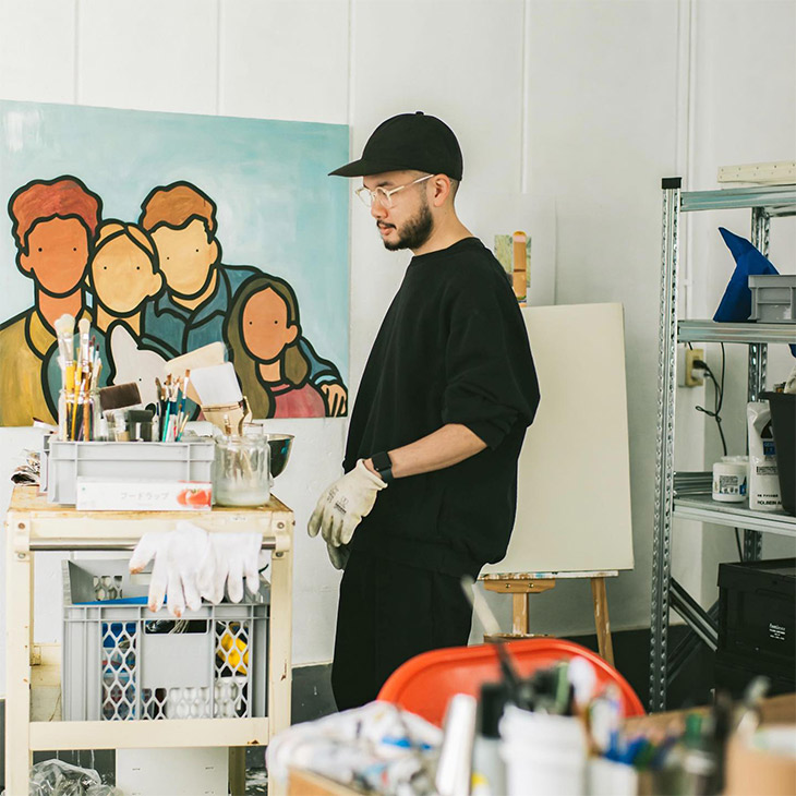 1988年大阪府生まれ。デザイナーとして活動後、東京を拠点に表現の手法をイラストレーションへ移行。現在は独自の解釈で情報を削ぎ落とした人物画を主に国内外で作品発表を続けている。