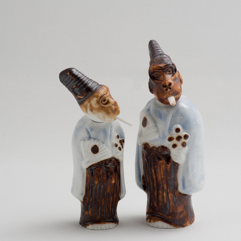 首を回すことができ、全体を前に傾けると舌が飛び出し、後ろに傾けると舌が口の中に収まります。江戸時代から作られており、幕末に開催されたパリ万博では、参加した佐賀藩の出品物の中に平戸藩三川内焼製造の舌出し三番叟人形がありました。その人形はナポレオン3世妃ウジェニーの目に留まり多く買い求められました。現在も一子相伝の昔のままの技法で手作りされています。