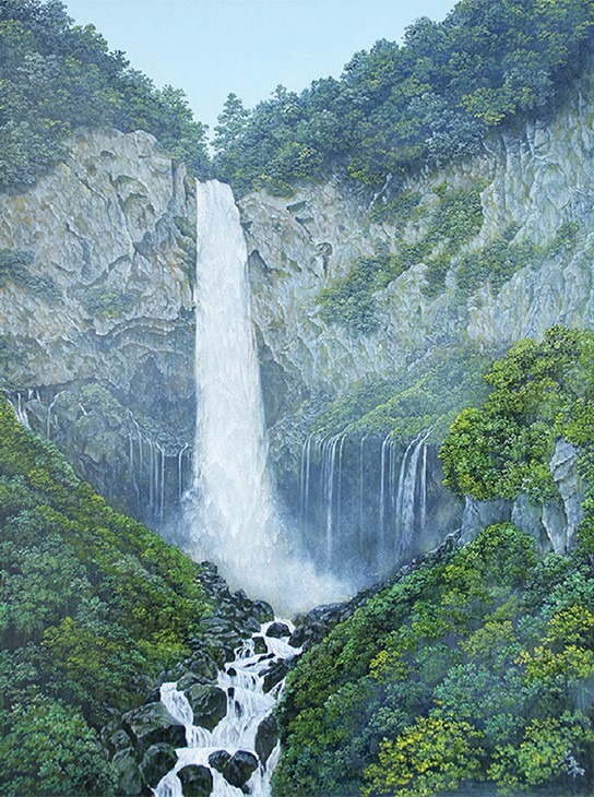 日本三名瀑の一つである華厳の滝、深緑に包まれた滝と巻きあがる水煙を細部まで表現しています。