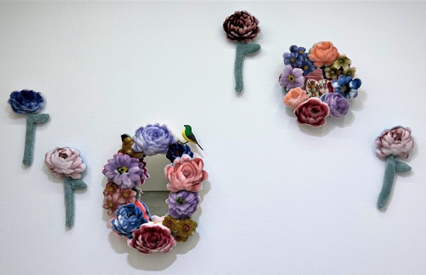 毛布製花たちと毛布製花の鏡(毛布の花一輪、花の鏡)