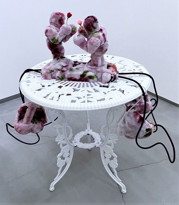 実家の庭にあるような、ロココ調の椅子と毛布でできた薔薇。